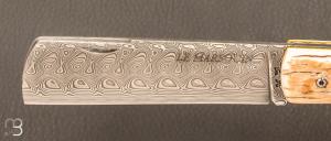 Couteau " Marsouin " custom de poche par Eric Albert - Croûte de mammouth et damas