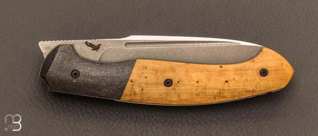 •  Couteau " Milvus " Liner-Lock flipper par Olivier Lamy - Erable stabilisé et lame en CPM Magnacut
