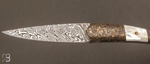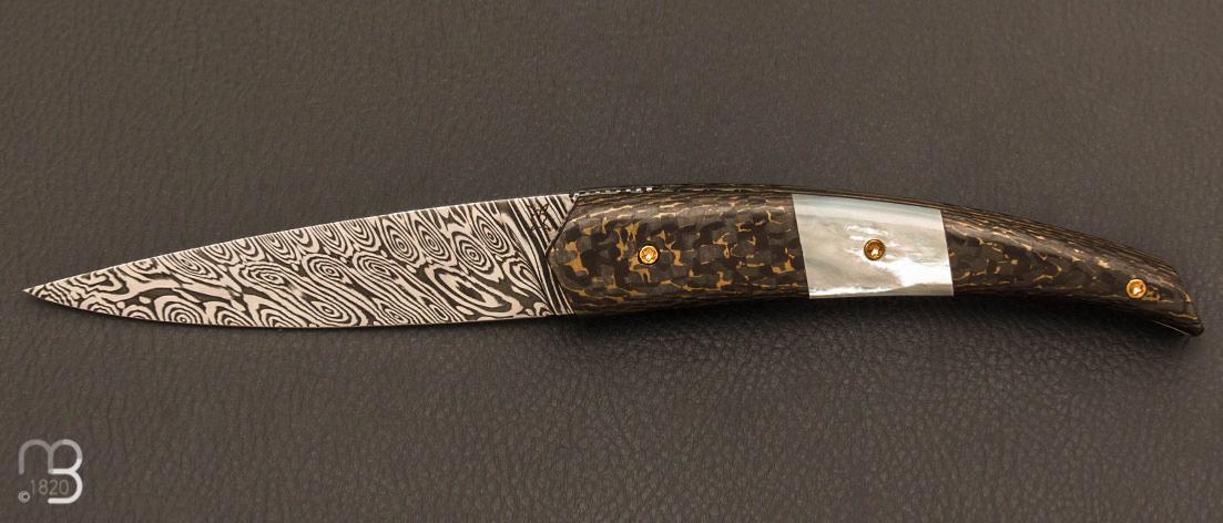 •  Couteau " ORCA " pliant par l'Atelier Les 2 Diables - Fatcarbon® et lame en damasteel
