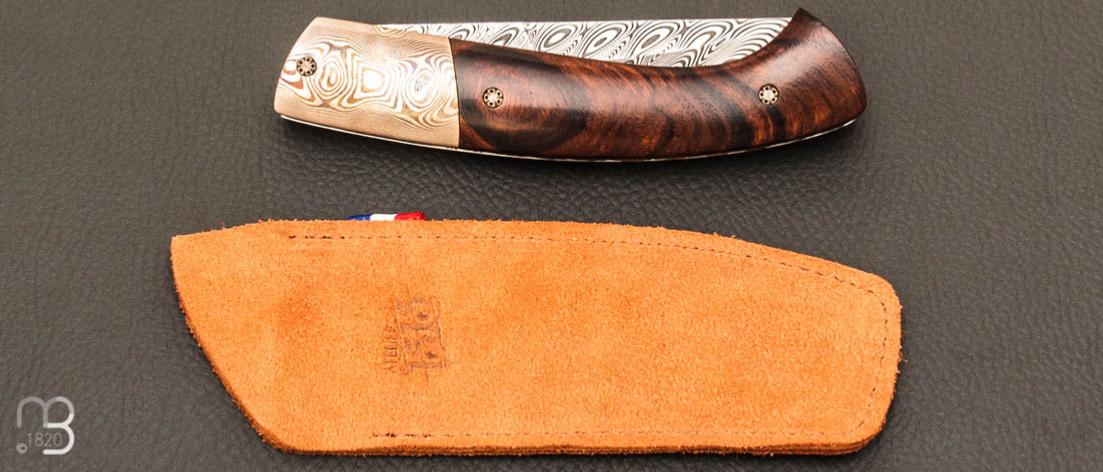 Couteau " Pièce unique N°2/4 " par Manu Laplace - Atelier 1515 - Bois de fer - Damas Mokumé