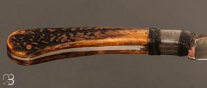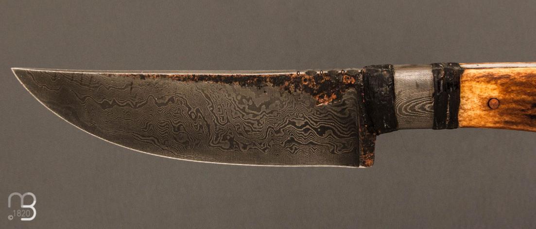 Couteau " Primitif " droit forgé par Pierre Henri Monnet - Bois de cerf et damas carbone