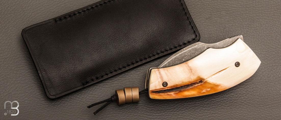 Couteau " Prototype " custom par Christophe Arbogast - Ivoire de phacochère et lame en 80CrV2