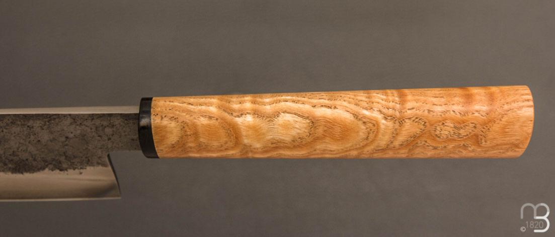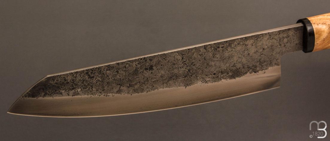 Couteau de cuisine fait main par Joël Matter, superbe pièce avec une lame en sandwich inox / carbone !
