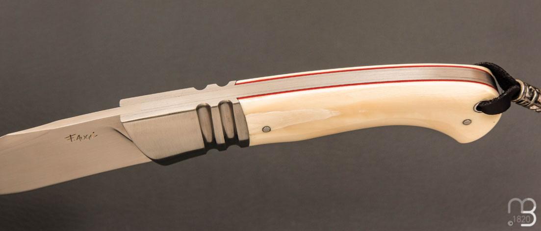 •    Couteau " Satan'ass " custom par Frédéric Augé - Ivoire de phacochère et lame en RWL34