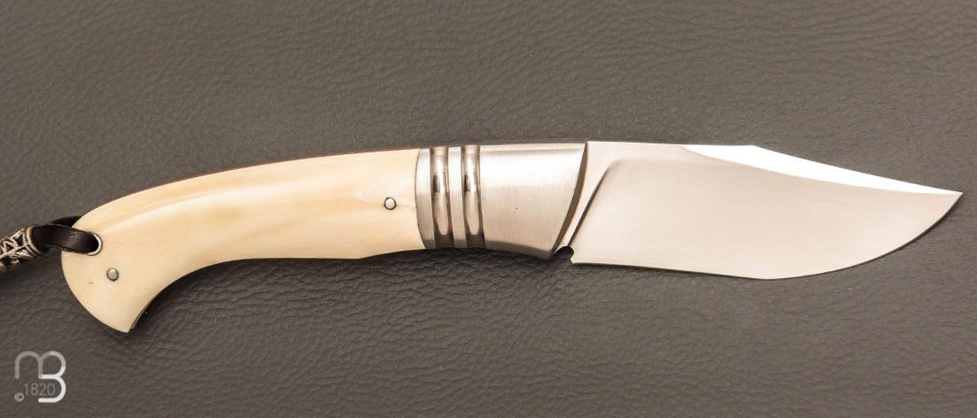 Couteau " Satan'ass " custom par Frédéric Augé - Ivoire de phacochère et lame en RWL34