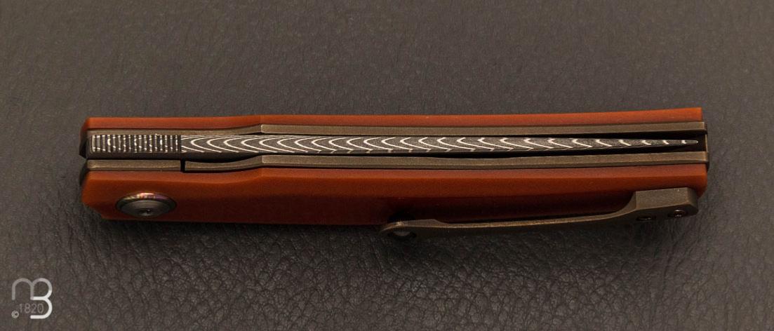 Couteau " SHUT 180 " par Thierry Savidan - Micarta butterscotch et lame damas Vegas Forge