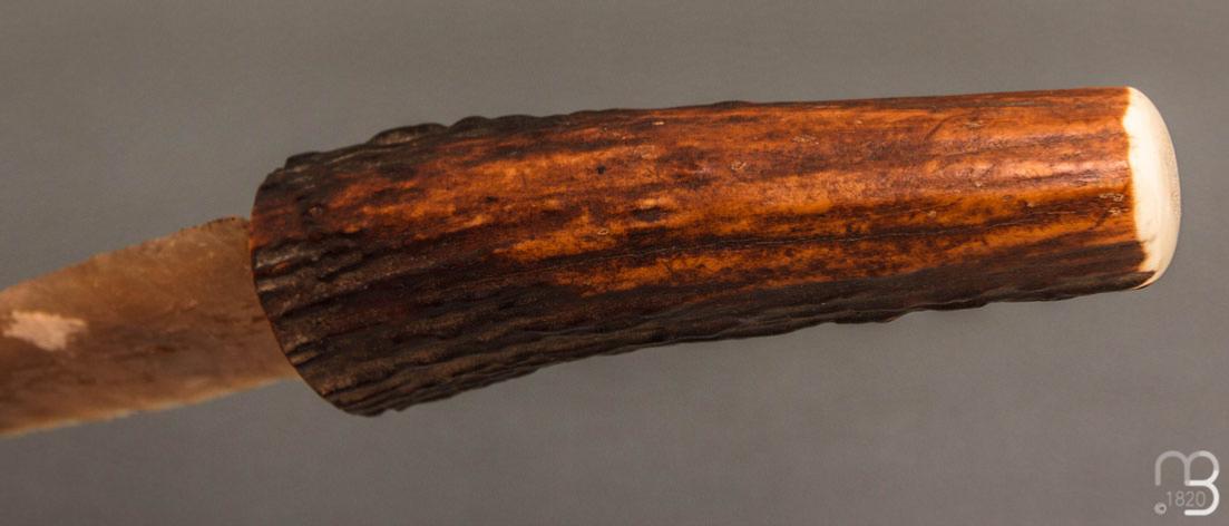Manche en bois de cerf fixé sur la lame par un mélange de cire d'abeille et de résine naturelle.