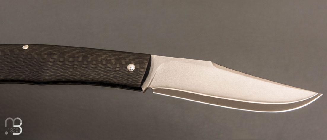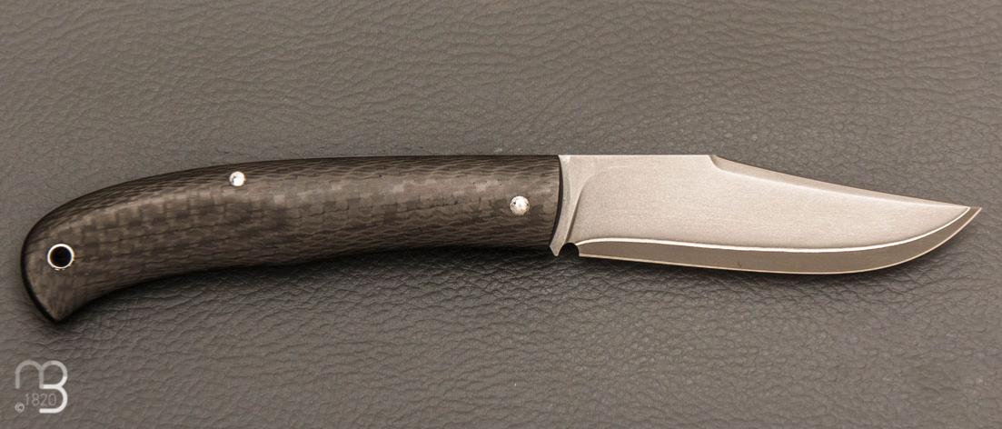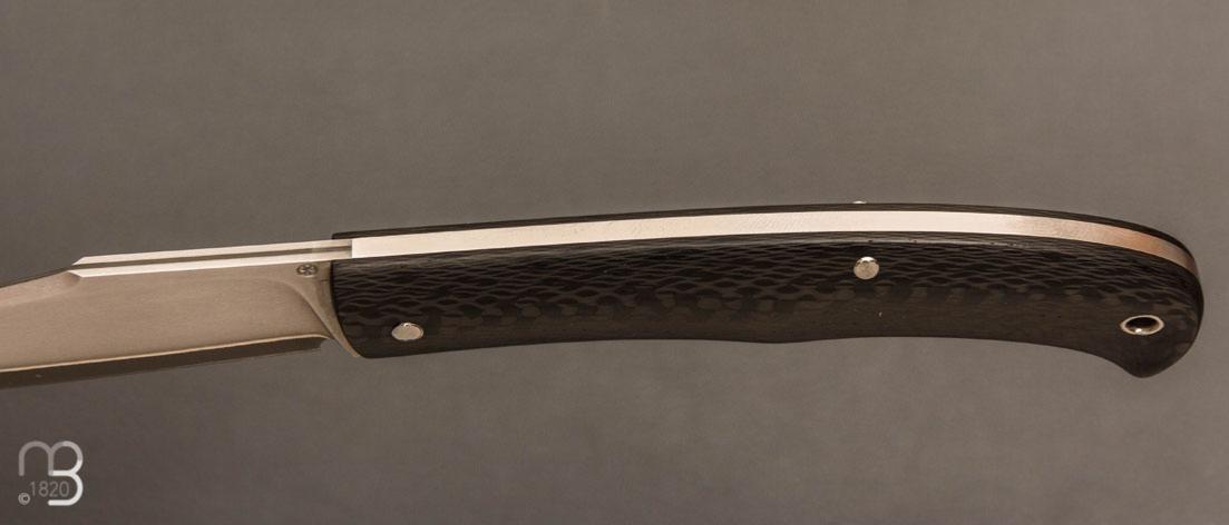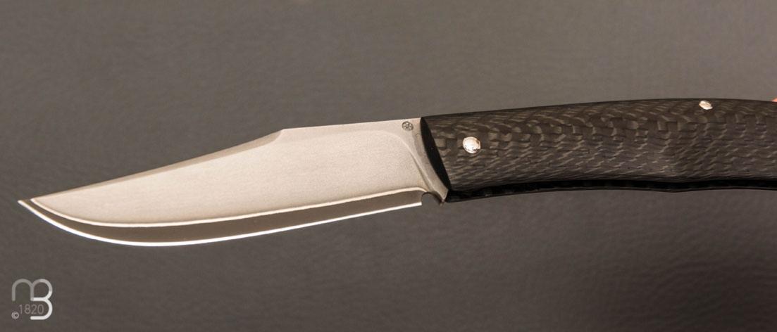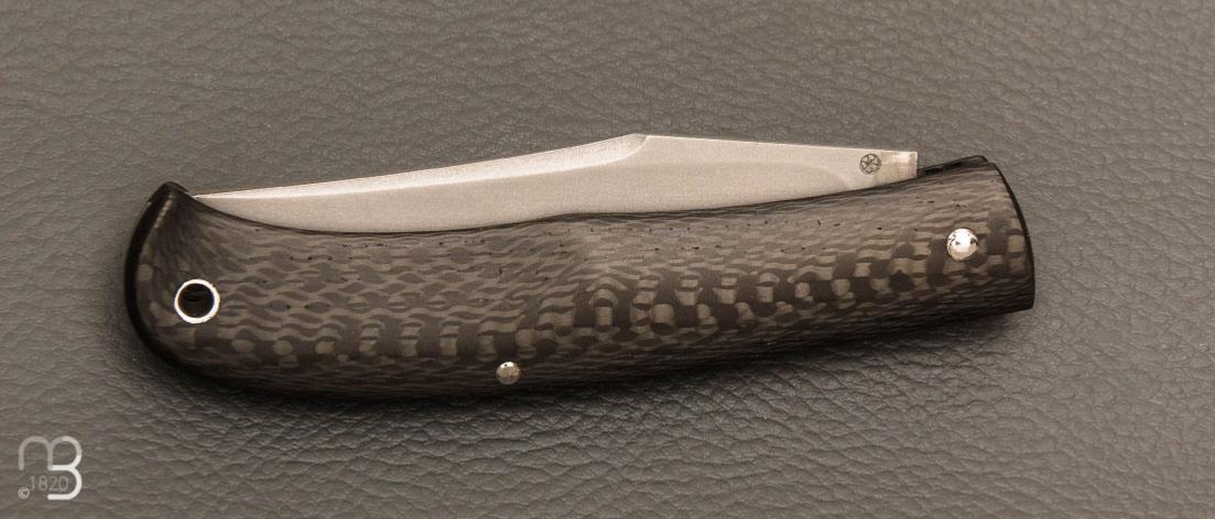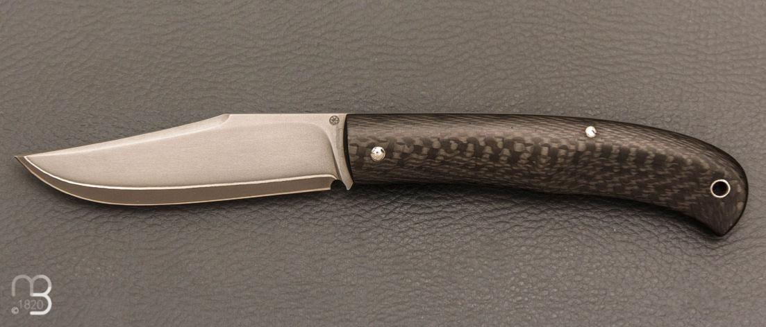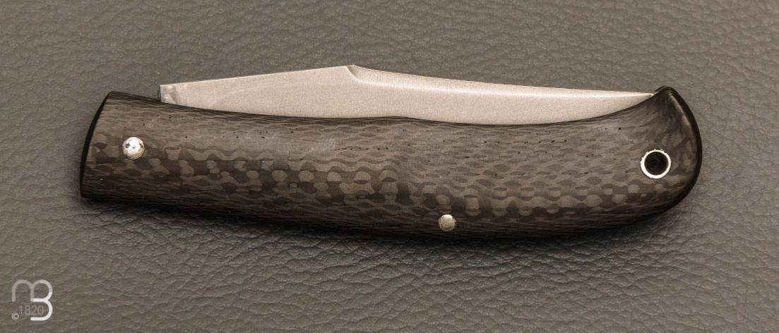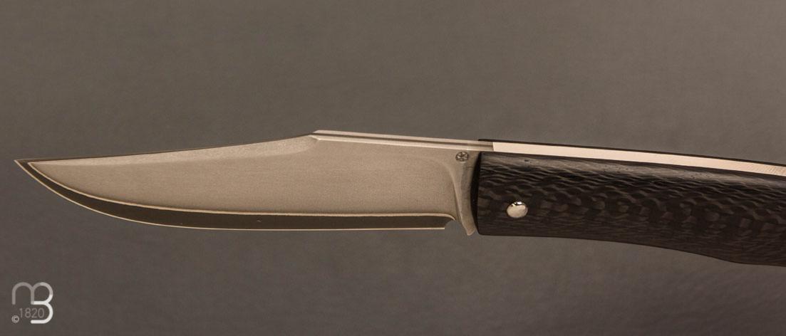 Couteau " Slack " custom par Raphaël Durand - Fibre de carbone et Suminagashi