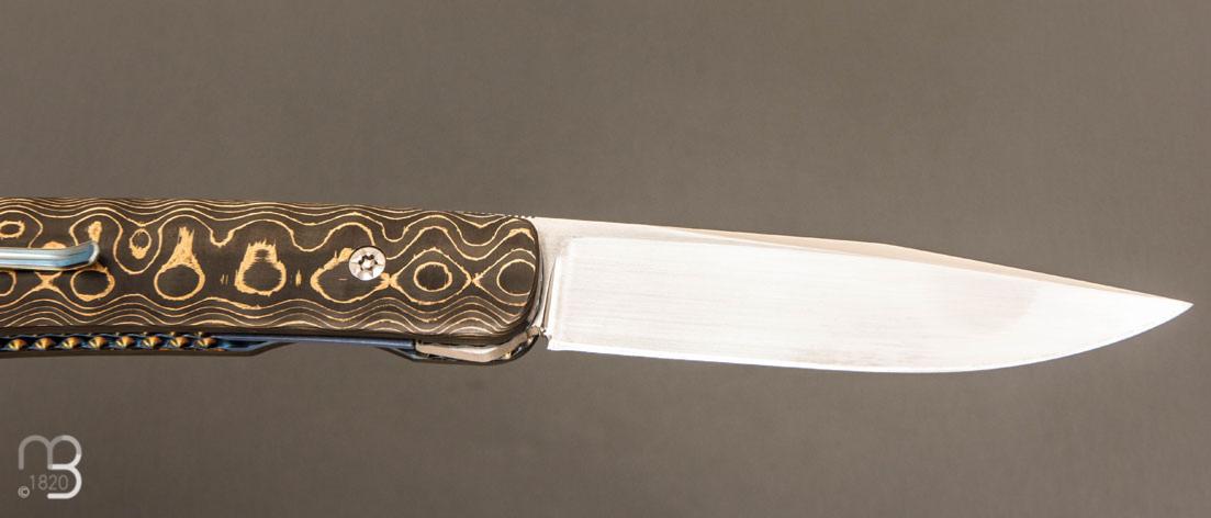 Couteau " Slimvubu " par Des Horn - Fatcarbon "Unigold" et lame en Nitrobe 77