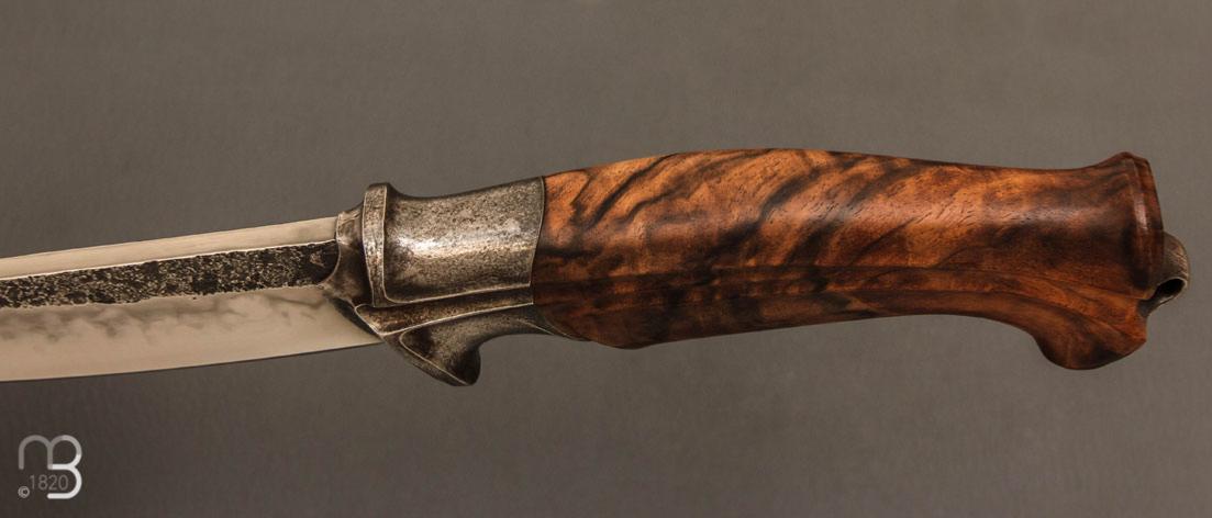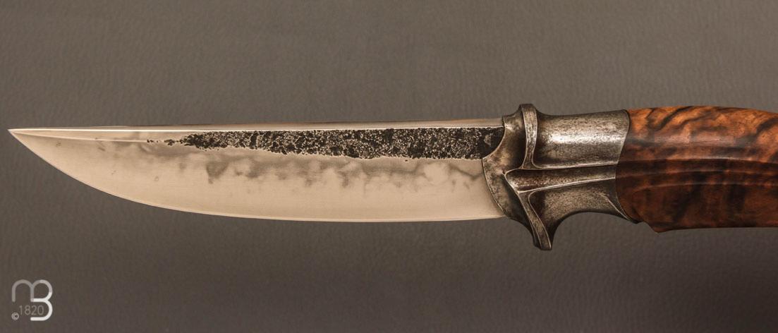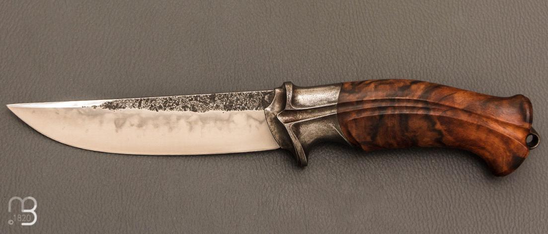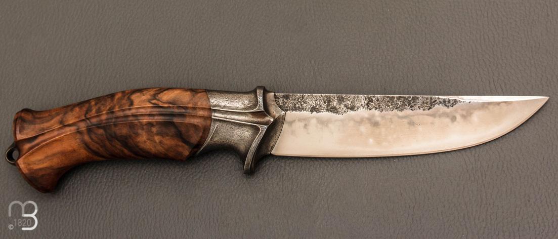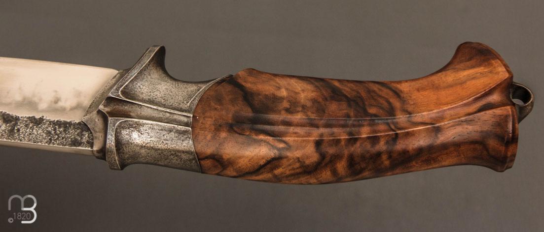 Un couteau fixe de Roman Stoklasa, avec un manche en noyer turc et une garde en acier entièrement travaillés comme Roman sait si bien le faire.