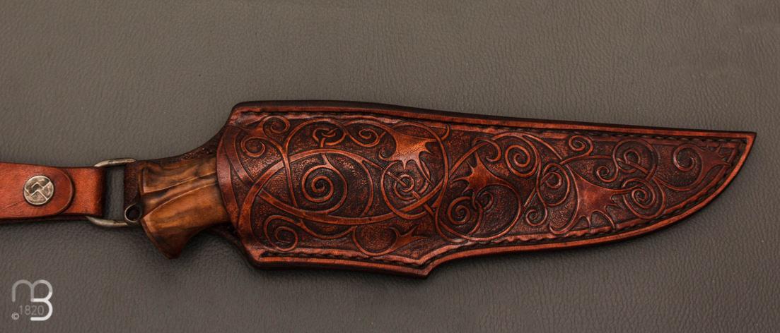Ce couteau de Roman Stoklasa est livré avec un étui en cuir brun tout travaillé, il s'agit d'un couteau unique, vous recevrez donc le modèle proposé sur les clichés ci dessus.