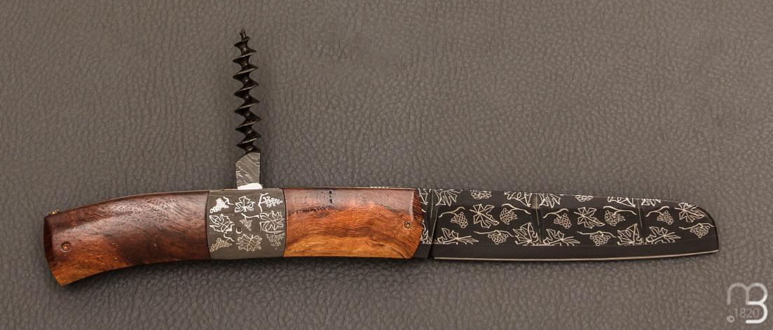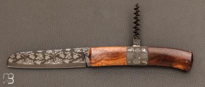 Couteau " Tire-bouchon" Cep de vigne et damas par Philippe Ricard