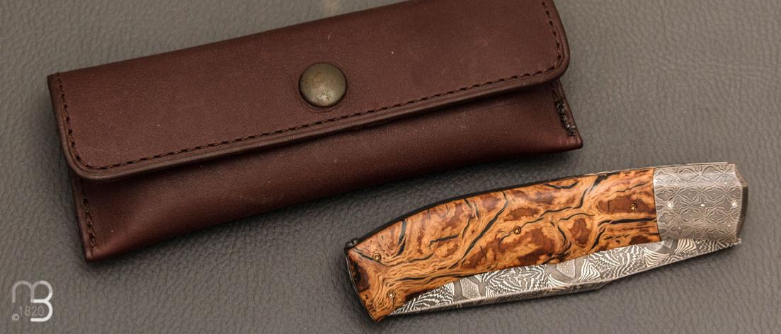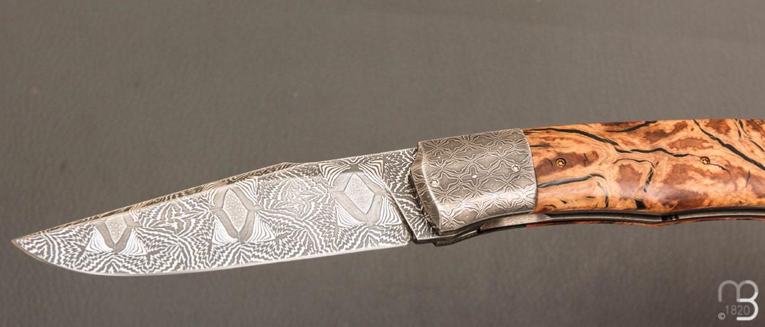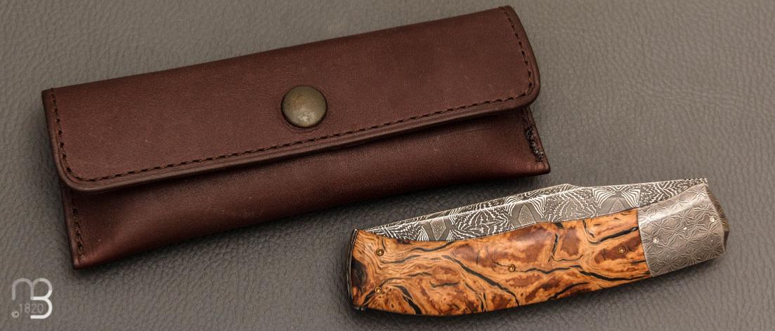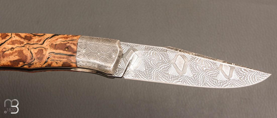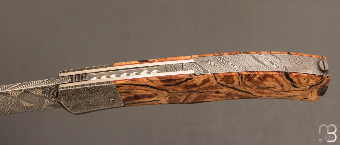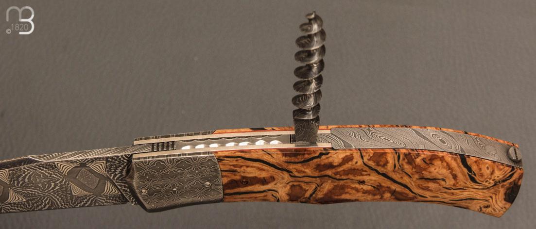 Couteau " Tire-bouchon" par Philippe Ricard - Loupe de chêne et lame damas