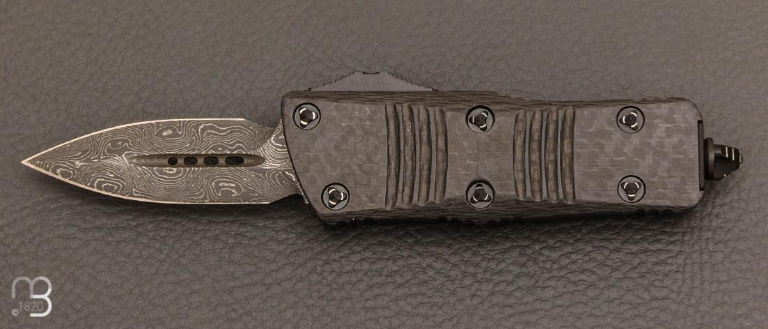 Couteau Automatique Microtech - Troodon® Mini D/E Signature Series Carbon Fiber Top Damascus Standard Ringed Hardware 238-16 CFS