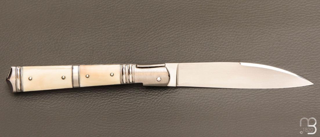 Couteau " Vendetta " custom de Jérôme Bellon - Ivoire de phacochère et RWL34