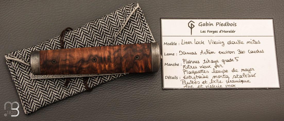 Couteau " Viking " style Puukko pliant des Forges d'Haraldr - Loupe de noyer et damas