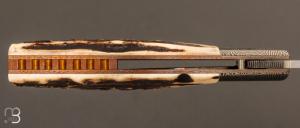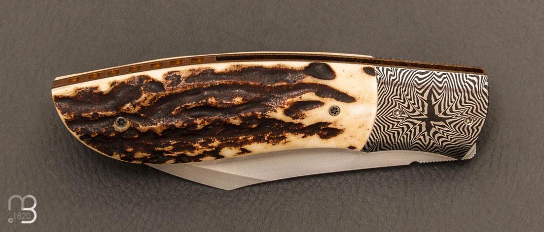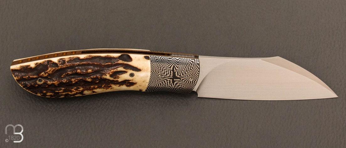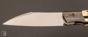 • Couteau " Wharncliffe " custom pliant par Milan Mozolic - Cerf sambar / damas et W2