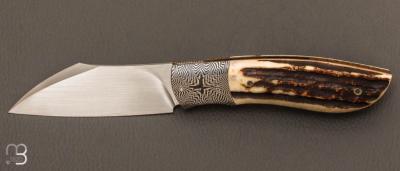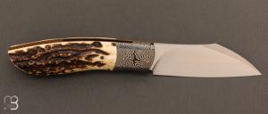 Couteau " Wharncliffe " custom pliant par Milan Mozolic - Cerf sambar / damas et W2