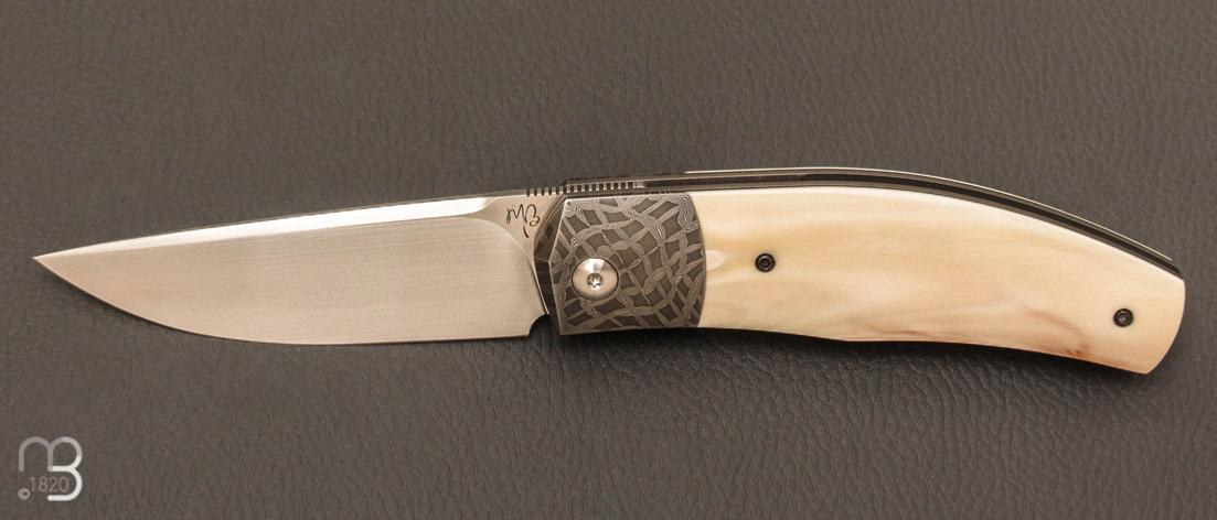 Couteau " Xou " custom par Maxime Belzunce - Ivoire de phacochère et lame en RWL34