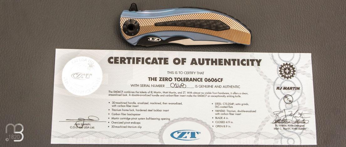 Couteau " ZT.0606CF " Edition limitée #0168 design de RJ Martin par ZERO TOLERANCE