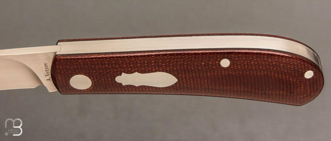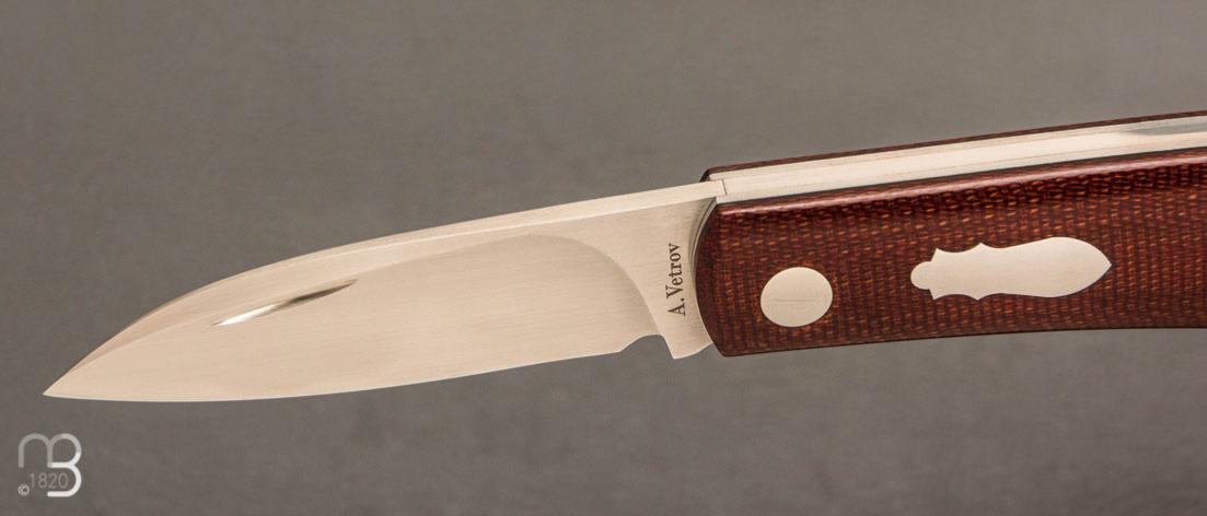 Installé en Ukraine, Aleksandr Vetrov fabrique des couteaux principalement au système "slipjoint', ses couteaux sont parfait et à présent reconnus dans le monde entier. Nous vous proposons ici un modèle "Zulu"