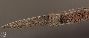 Dague pliante custom par Alain & Joris Chomilier - Damas Vegas Forge et Windowframe Jaspe
