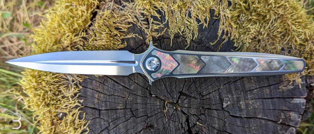 •   Dague pliante " Exocet " custom de Lionel Lalague - Nacre noire et lame en RWL34