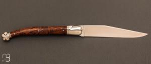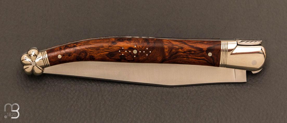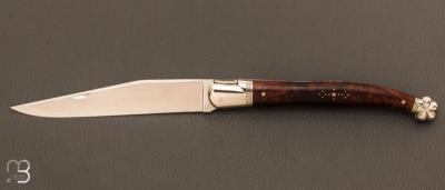 Laguiole trèfle fait main par Adrien Vautrin - Loupe de bois de fer d'Arizona et 14c28N