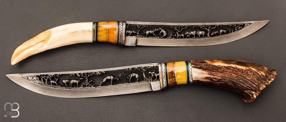 Manches en couronne de bois de cerf pour l'un et ivoire de phacochère pour l'autre