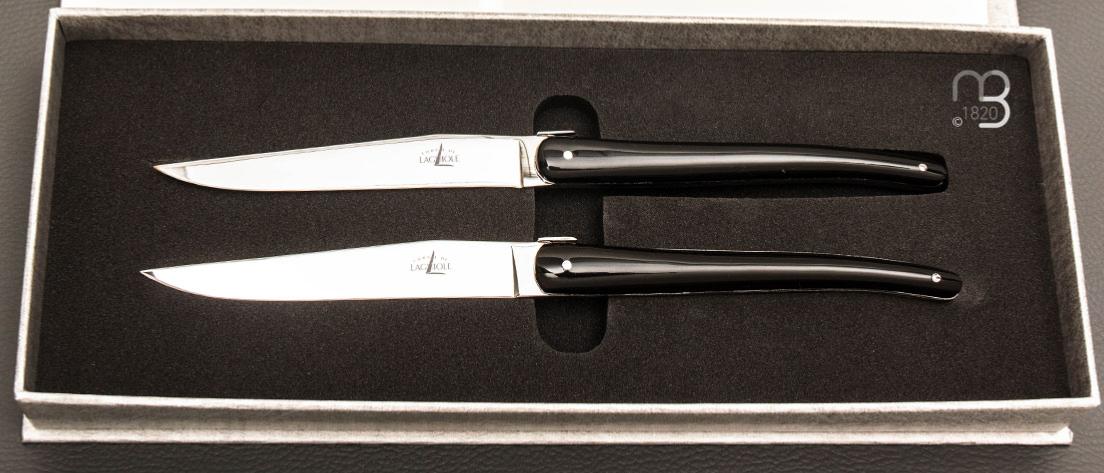 •  Coffret de 2 couteaux de table Laguiole par J. -M. Wilmotte - Noir brillant