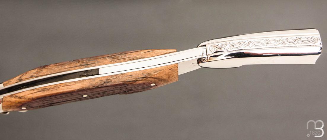 Un couteau et un sommelier avec des magnifiques plaquettes en chêne de barrique