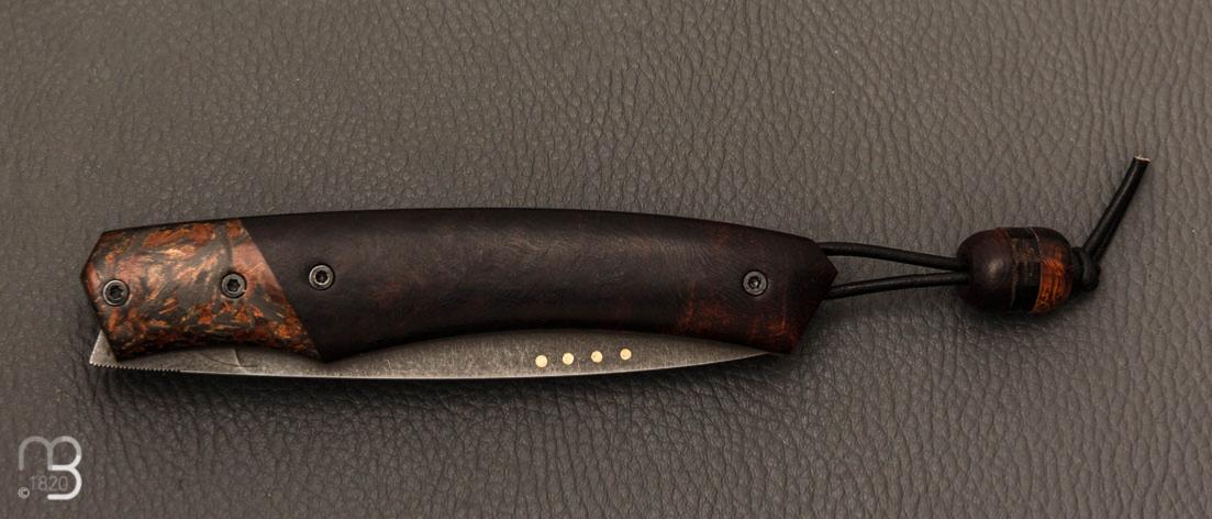 Couteau fait main par le jeune artisan coutelier Ardéchois SMZ Flammes de forge.