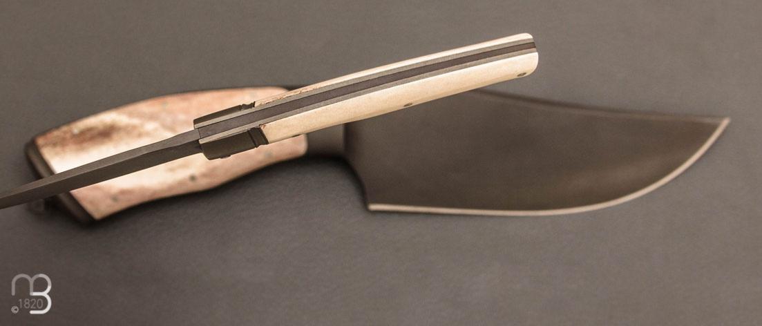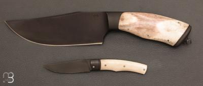 Couteau  "  2 en 1 " fait main de Mickael Moing -  Bois de renne et 100Cr6