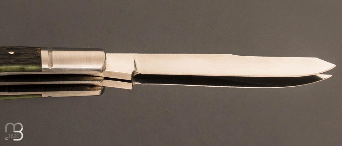 Plaquettes du manche en green jigged bone (os cerfé teinté), longueur manche 100 mm