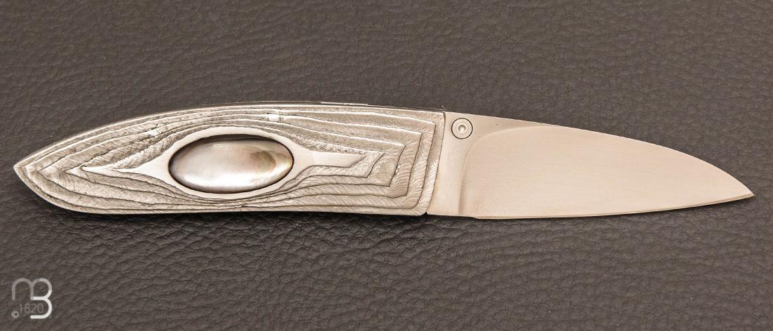 Couteau " Airstep Inlay " custom en nacre par Koji Hara