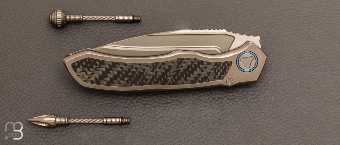 • Couteau "  Anax®  " de Microtech - Titanium Handle Bead Blast Standard Blue Titanium Pivot Collar Carbon Fiber Inlay - 190C-7 CFITI