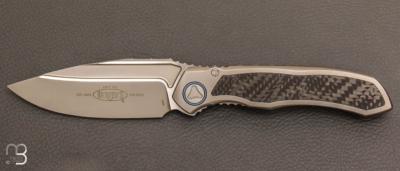 Couteau "  Anax®  " de Microtech - Titanium Handle Bead Blast Standard Blue Titanium Pivot Collar Carbon Fiber Inlay - 190C-7 CFITI