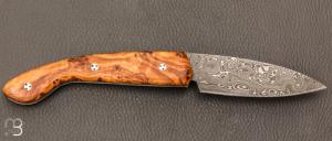 Couteau " Ariégeois " par la Coutellerie Savignac - Loupe d'olivier et Damasteel
