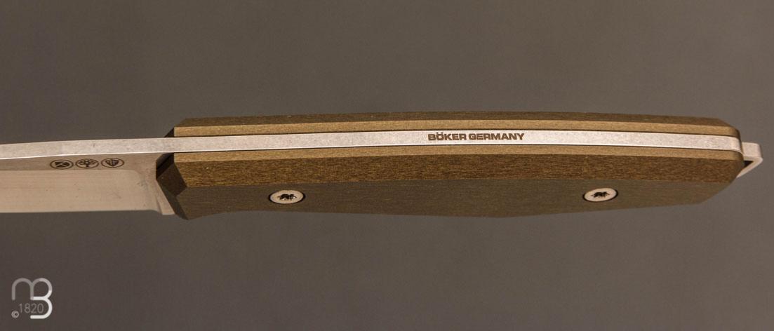 Couteau fixe Boxer design Alex Kremer, réalisé par Böker à Solingen en Allemagne.