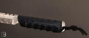 • Couteau " Baby Wild " de Wildsteer - Manche cuir d'autruche bleu et lame damas