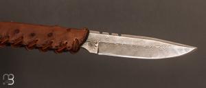 •  Couteau  " Baby Wild " de Wildsteer - Manche cuir d'autruche marron et lame damas
