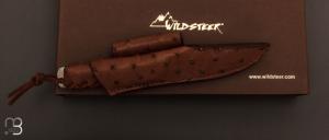 Couteau  " Baby Wild " de Wildsteer - Manche cuir d'autruche marron et lame damas