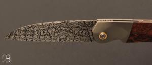 Couteau "Balrog L" liner-lock par Florian Keller - Loupe bois de fer/Zirconium et damas mosaïque