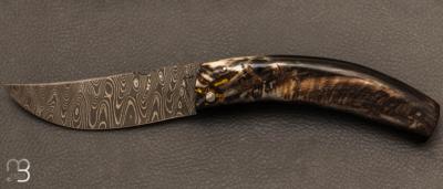 Couteau " Berger " pliant par José Viale - Lame Damas 400 couches et corne de bélier
