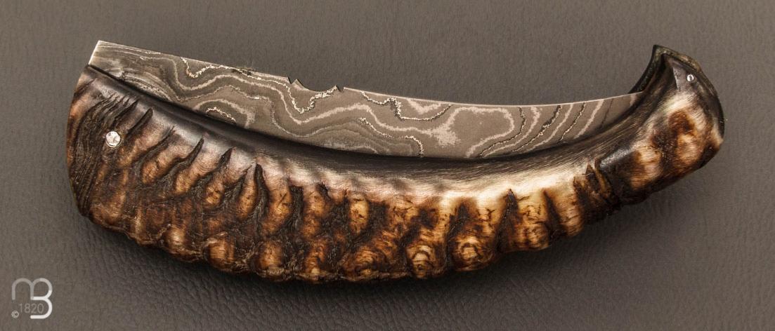 • Couteau " Berger XL " pliant par José Viale - Lame Damas et corne de mouflon