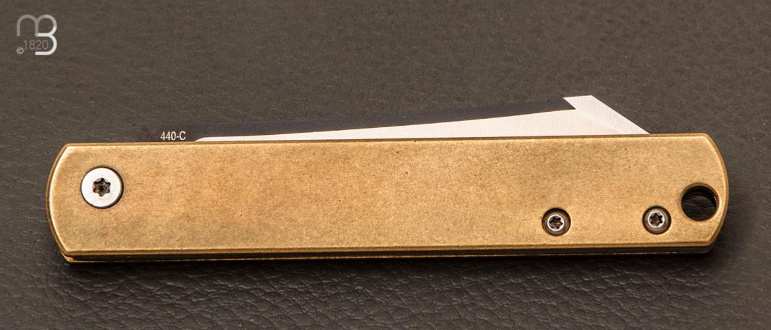 Couteau de poche modèle Zenshin 42 Laiton par Böker Plus gravé par Mali Irie