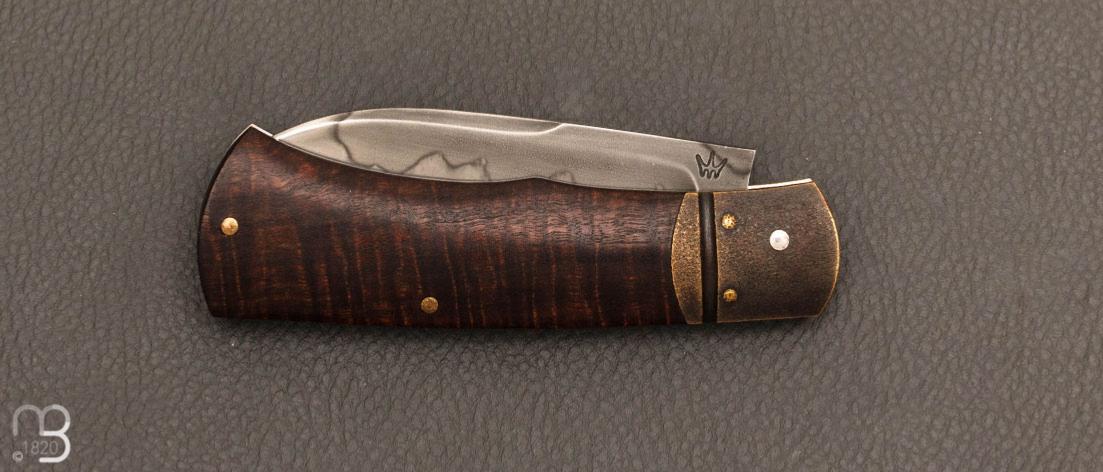 Couteau " Bonny " pliant custom Red Gidgee ondé stabilisé par Nicolas Weber