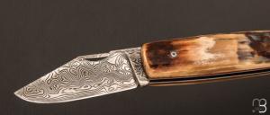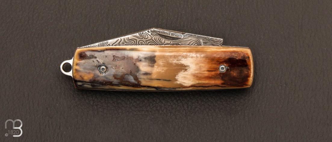 Couteau " Bouledogue " custom de poche par Eric Albert - Mammouth et Damasteel
