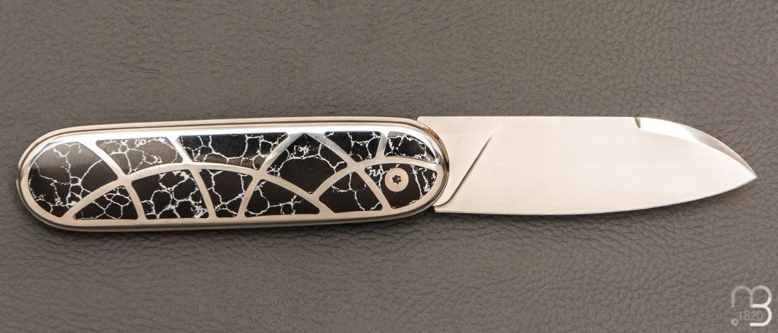 Couteau "Bull'ix" custom de Florent Dall'ava - L'atelier Dall'ava - Onyx argent et lame en RWL34