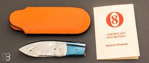 • Couteau  "  Button-lock " custom par Roberto Ottonello - Nacre blanche et lame damas VG10